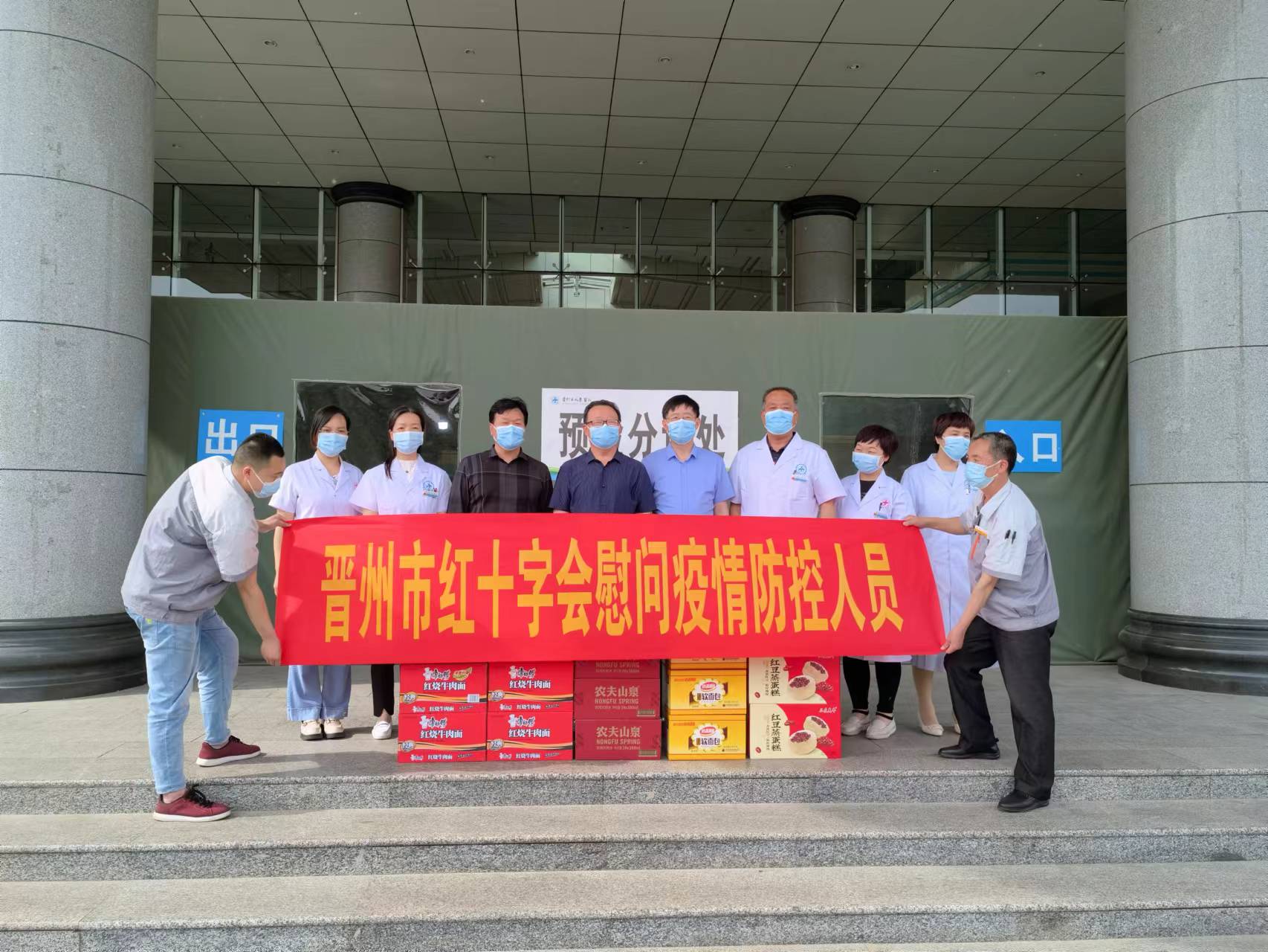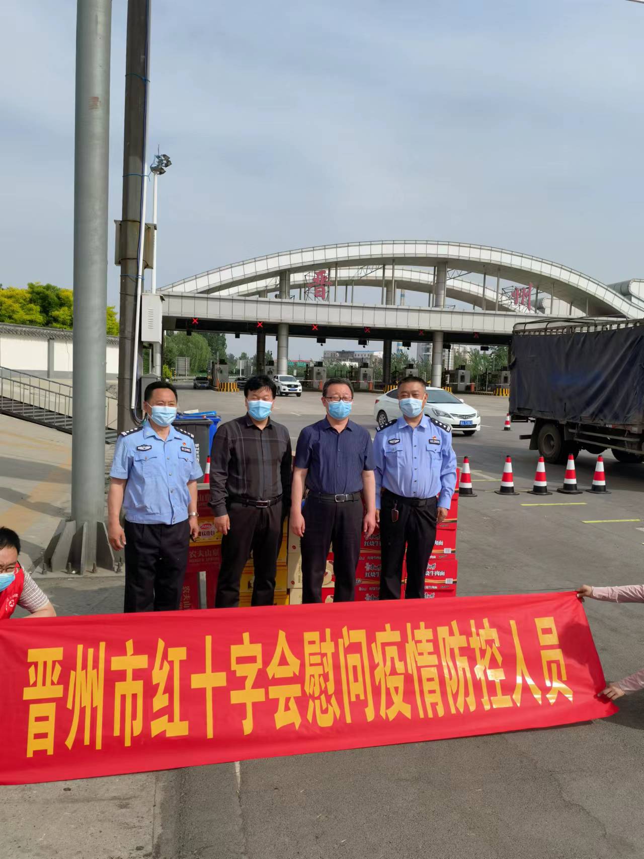 5月5日下午,在“5·8红十字博爱周”来临之际,我市副市长李军带领晋州市红十字会常务副会长陈怀波、秘书长王帅来到晋州高速口等三个疫情防疫点,慰问了坚守在一线的公安、医护等工作人员,为他们送去了面包、矿泉水、方便面等慰问品。