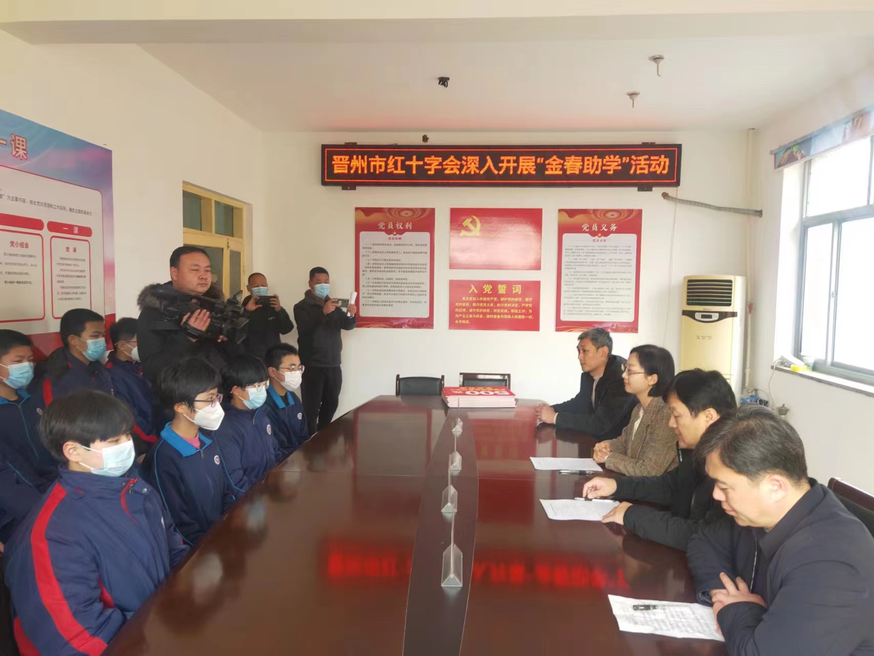2023年2月16日下午,晋州市“金春助学”活动在红十字会三楼会议室隆重举行 ,副市长冀涛同志参加了本次资助活动。