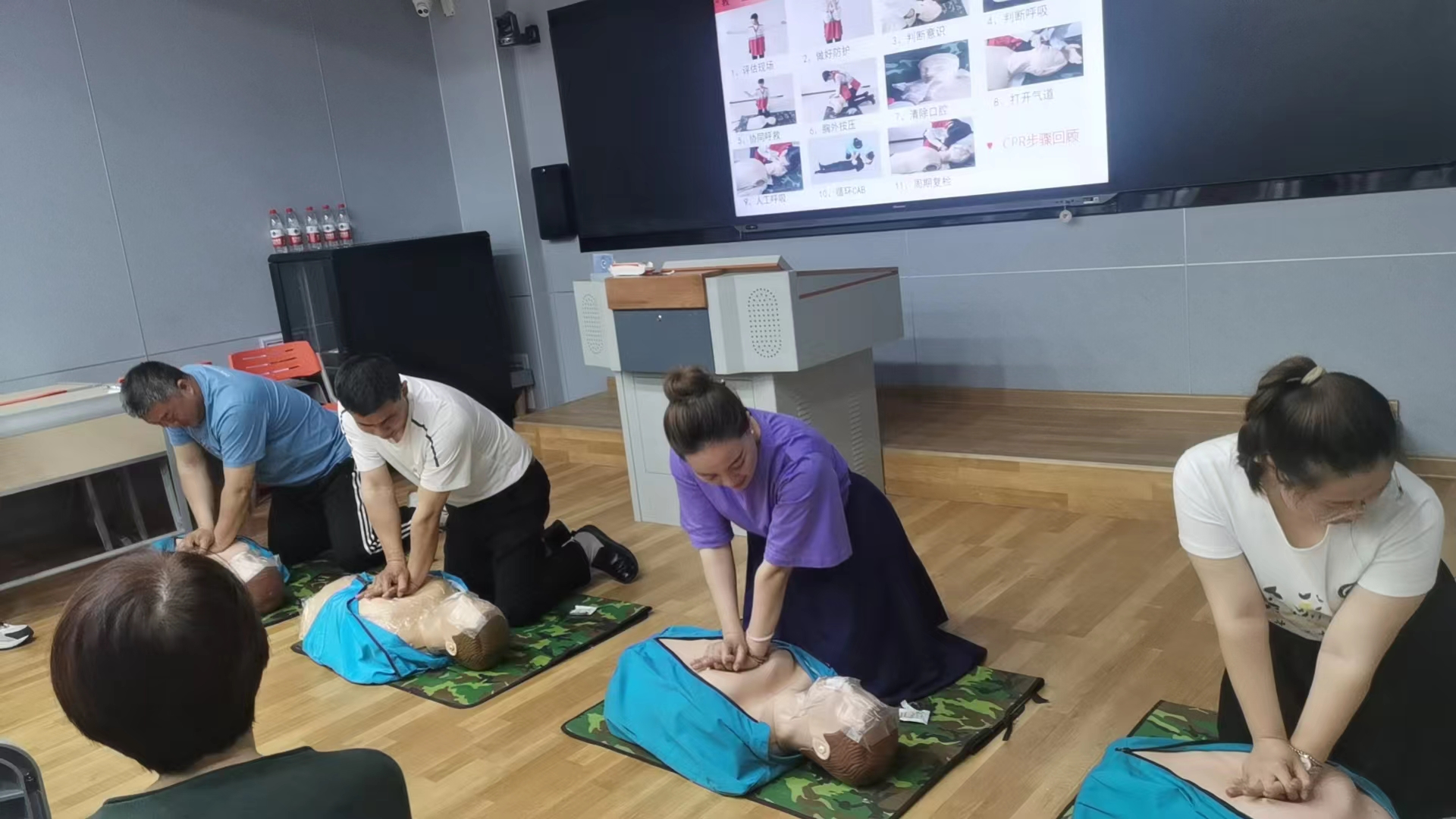此次应急救护培训包括理论知识讲解、实践操作指导两个环节。重点讲解了心肺复苏的概念、实施心肺复苏的必要性和“黄金四分钟”,并详细展示了仰头举颌、开放气道、心肺复苏、人工呼吸、复原体位等心肺复苏(CPR)操作流程。还讲解了AED(自动体外除颤器)的使用方法和海姆立克急救法的详细操作步骤。