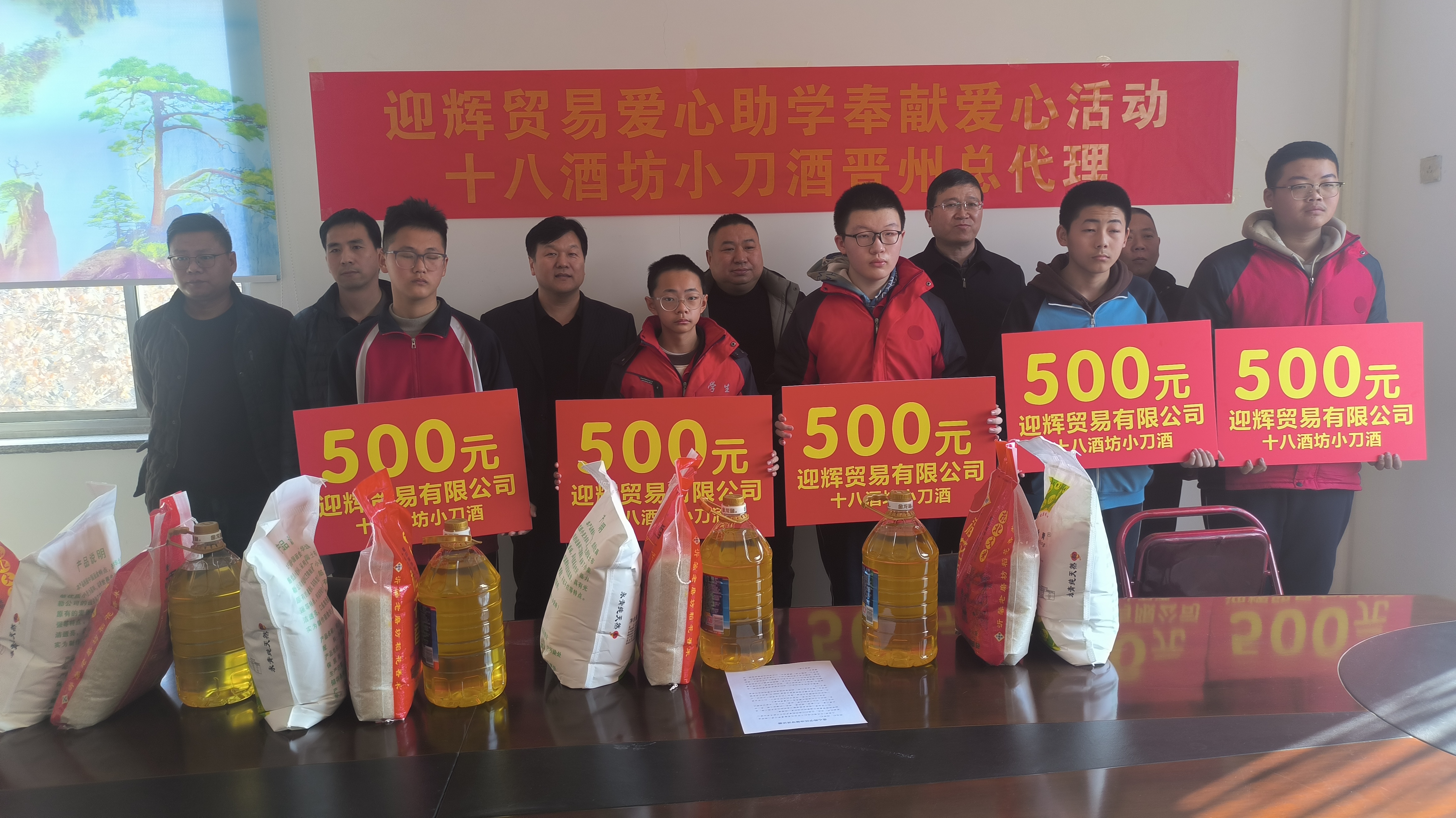 1月19日上午,晋州市红十字会携手迎辉贸易有限公司开展“爱心助学”活动,资助晋州市第三中学5名困难中学生,每人500元现金以及米、面、油等生活物资。