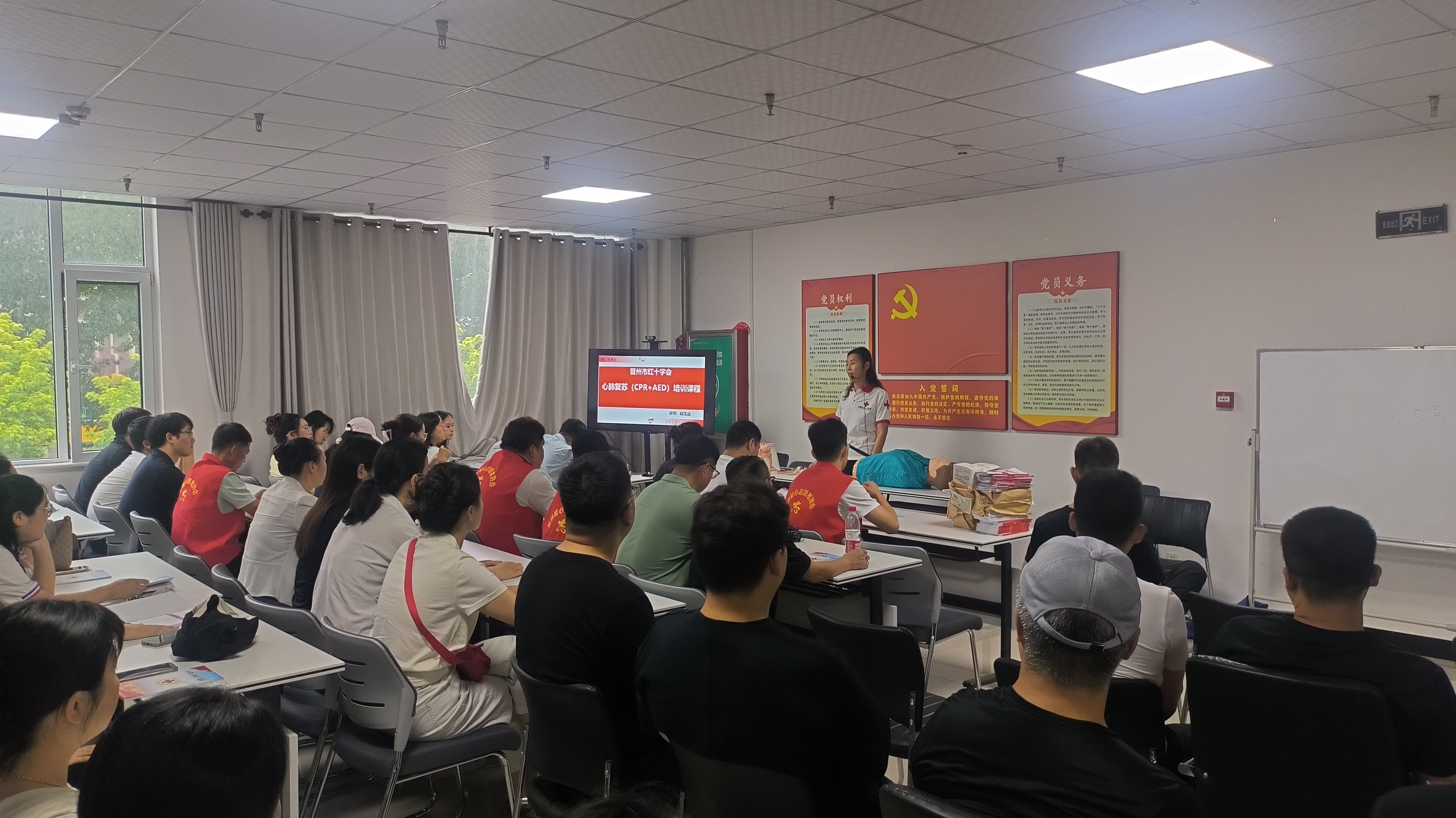 为进一步增强广大社区工作者及志愿者的安全意识,提高应对突发事件和意外伤害的应急救护能力,切实筑牢安全防线,7月1日上午,晋州市红十字会联合市委社工部在时代社区居委会会议室开展心肺复苏(CPR+AED)技能培训,共有社区工作者及志愿者62名学员参加了本期培训活动。