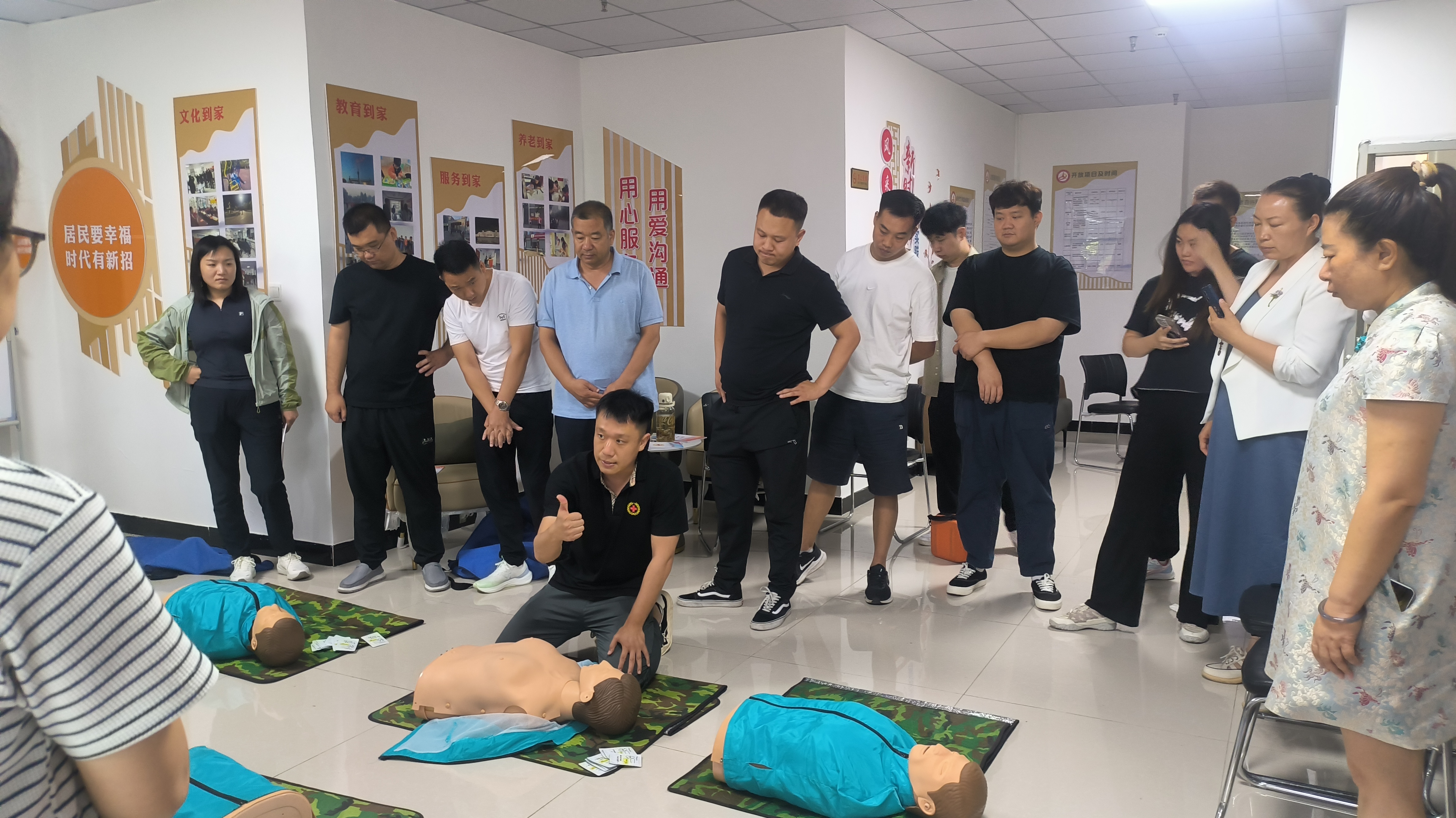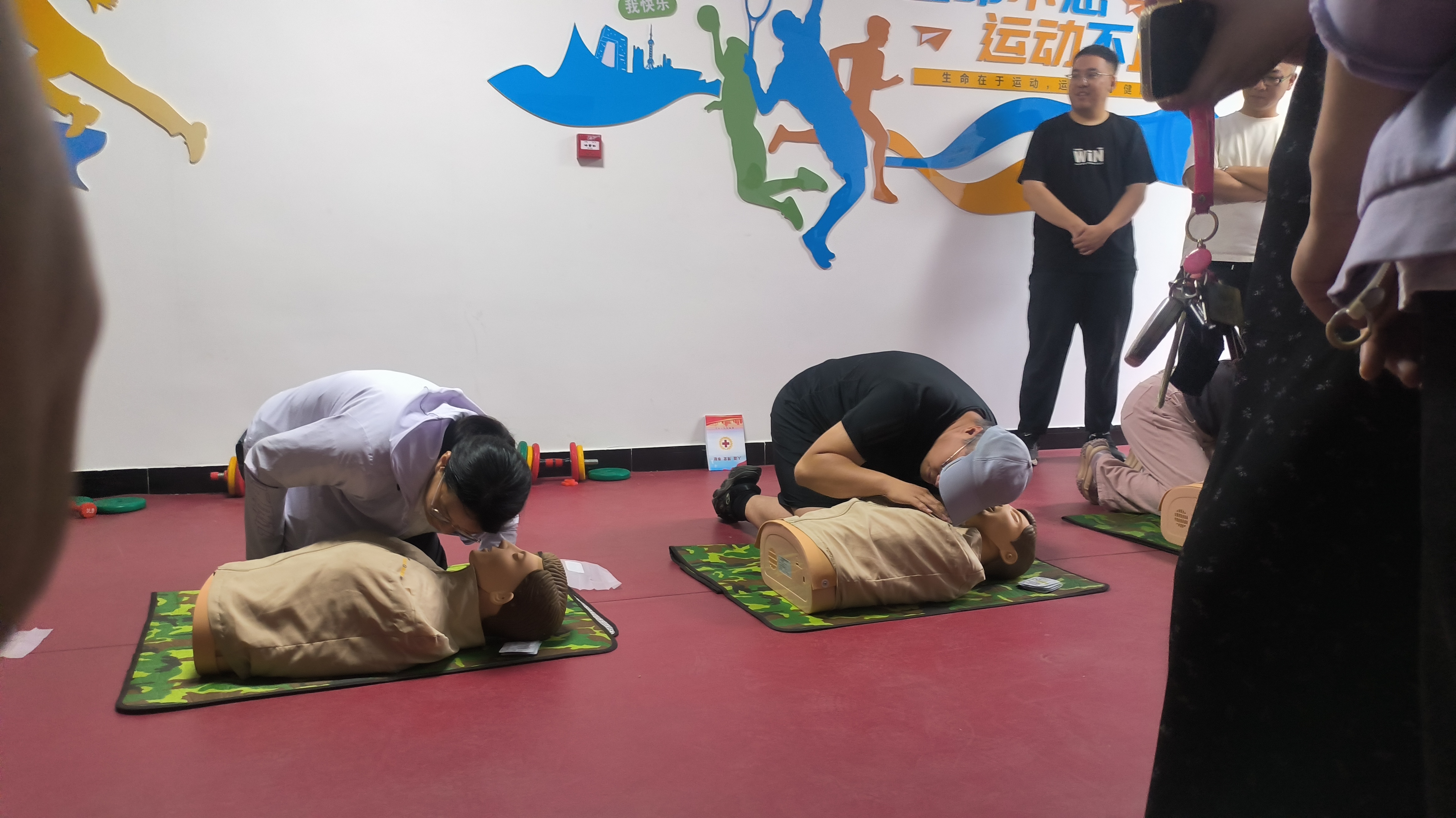 培训中,石家庄市红十字卫生救护培训中心讲师采取理论与实际操作相结合的方式,深入浅出地讲解了红十字运动知识、救护概论、现场救护理念和心肺复苏(CPR+AED)实操等内容。 在实践操作环节,培训老师采用模拟人道具和教具详细讲解心肺复苏的原理、规范流程、操作技巧,并现场演示了心肺复苏和AED使用场景全过程,指导学员们一一进行规范操作,深化学习内容记忆,切实提升实际操作能力。