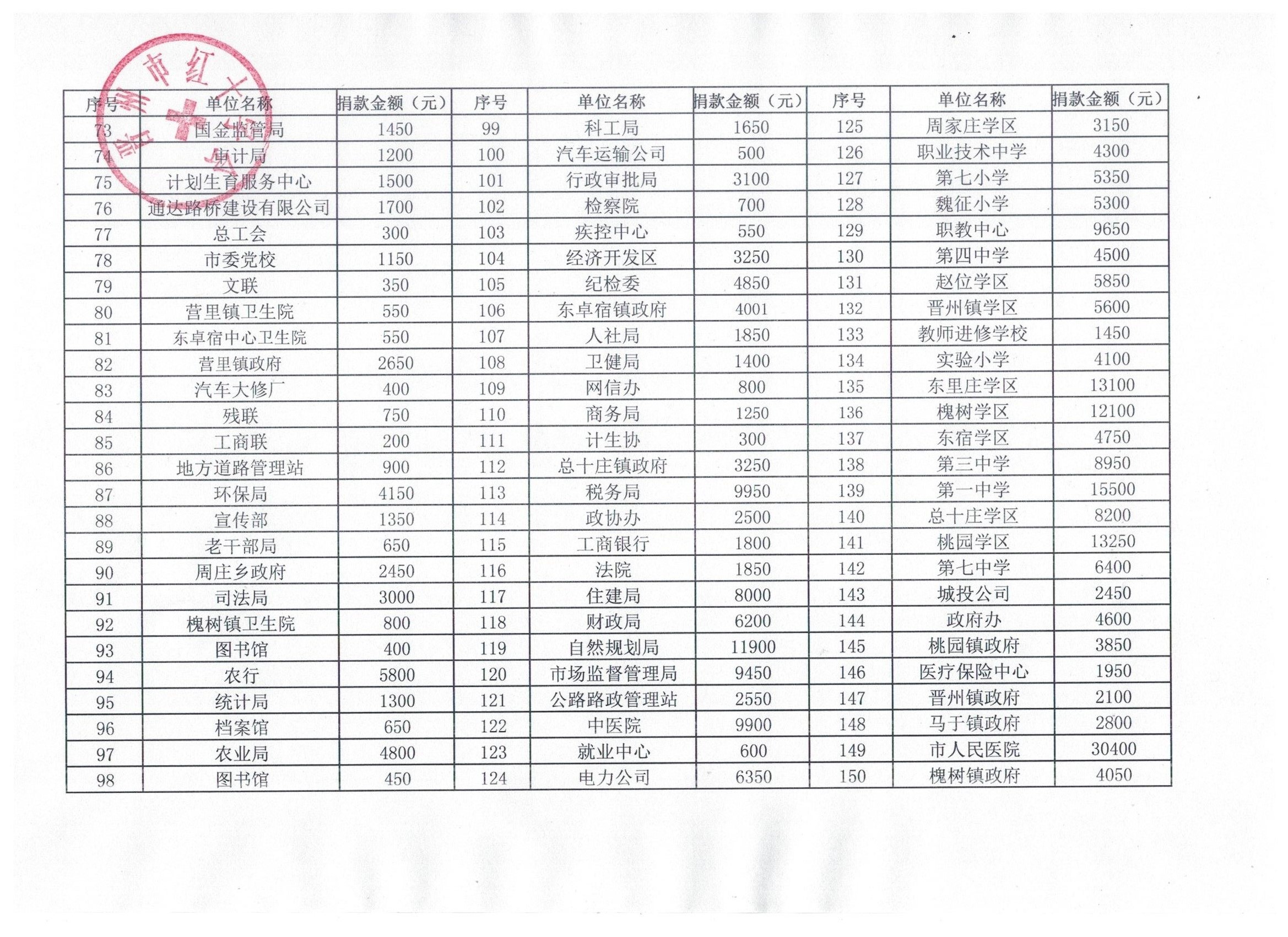 晋州市红十字会2024年“博爱一日捐”捐款明细公示